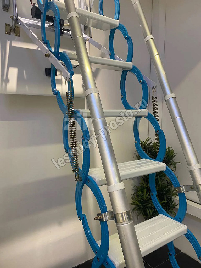 Чердачная лестница с электроприводом ZiKco алюминий с поручнем