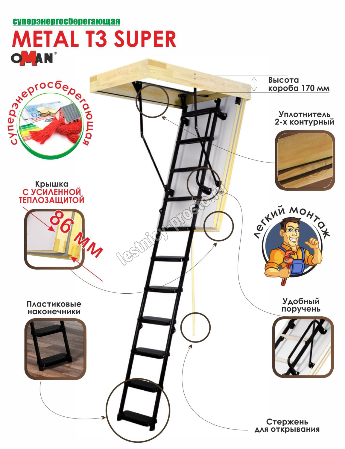 Чердачная складная лестница OMAN Metal T3 SUPER