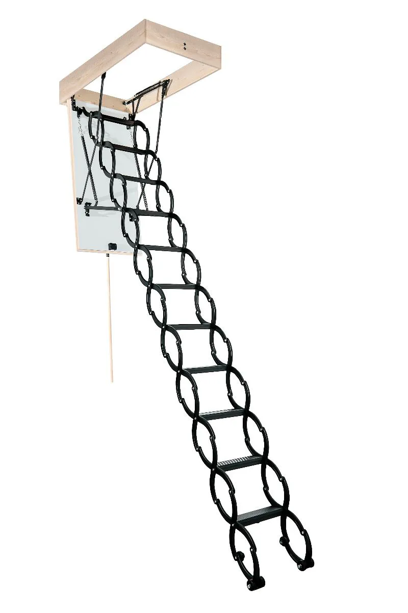 Максимально утеплённая чердачная лестница из массива сосны высокого качества. Складная, трёхсекционная (до 280 см) или четырехсекционная (до 335 см).