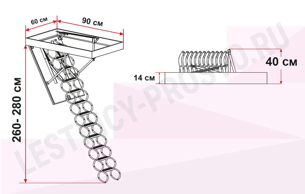 Чердачная термоизоляционная ножничная лестница FAKRO LST 60×90 см, h-280 см