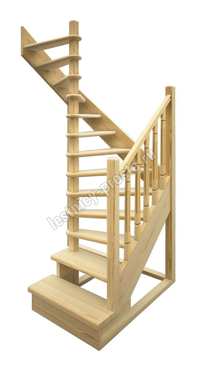 Базовый комплект включает в себя деревянные элементы лестницы и ограждения без какого-либо покрытия.