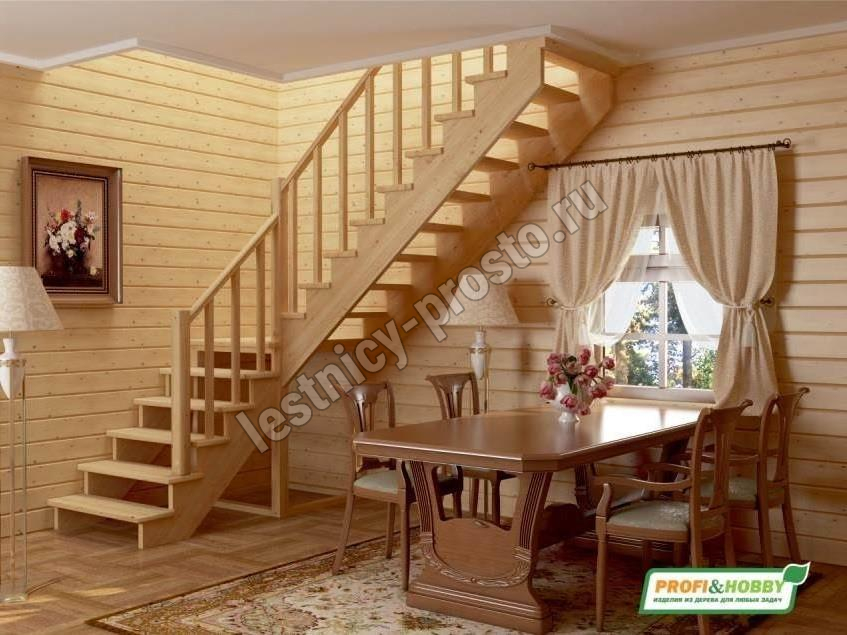 Базовый комплект включает в себя деревянные элементы лестницы и ограждения без какого-либо покрытия