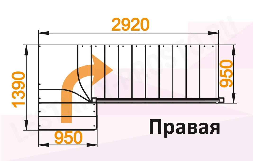 Схема лестницы К-031М с поворотом направо