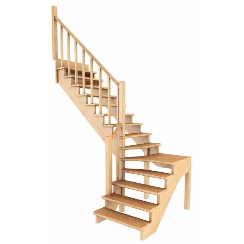 Ступени и поручень лестинцы изготовлены из дуба, остальные элементы из сосны. Возможно изготовление данной модели полностью из дуба. Базовый комплект включает в себя деревянные элементы лестницы и ограждения без какого-либо покрытия.