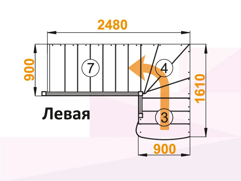Лестница К-001М/2 с поворотом налево