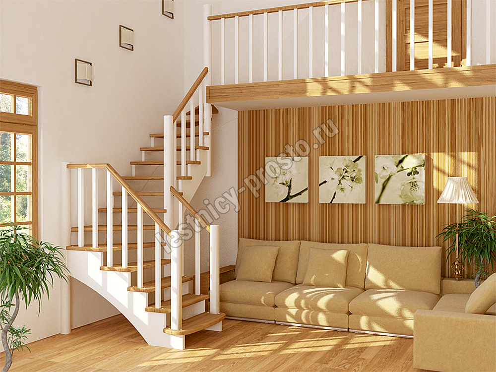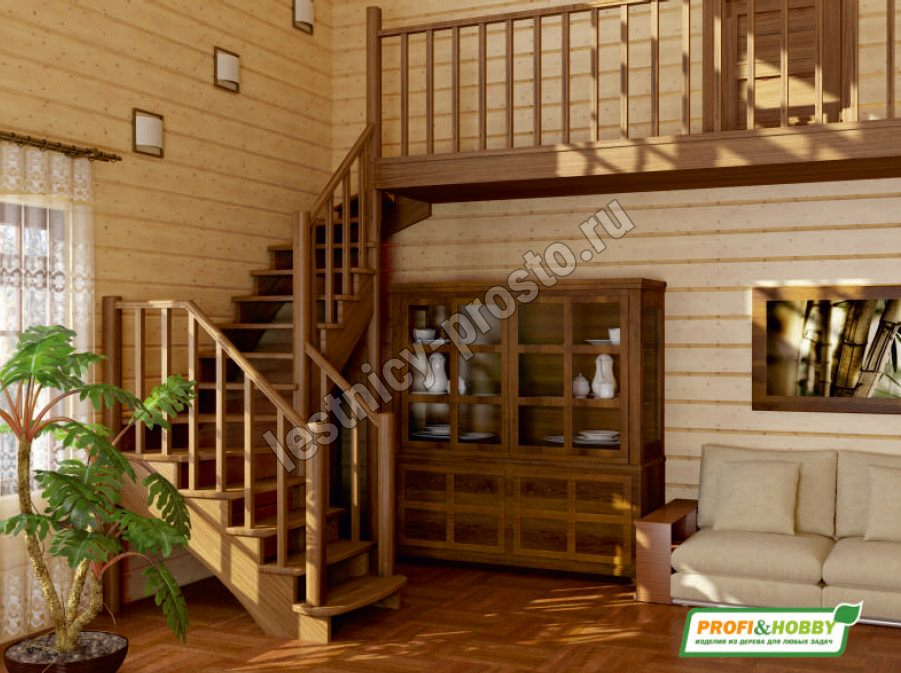 Базовый комплект включает в себя деревянные элементы лестницы и ограждения без какого-либо покрытия.