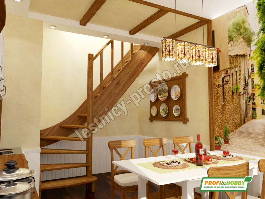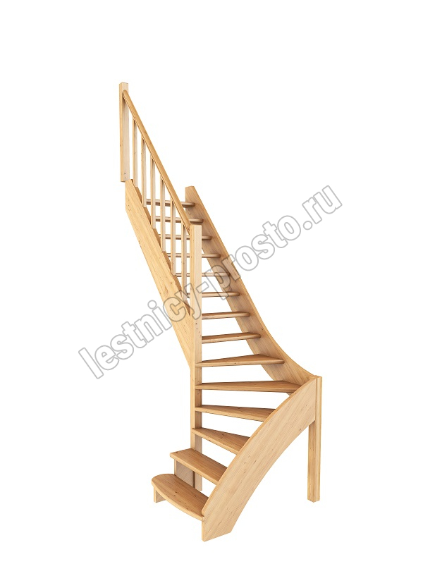 Базовый комплект включает в себя деревянные элементы лестницы и ограждения без какого-либо покрытия.