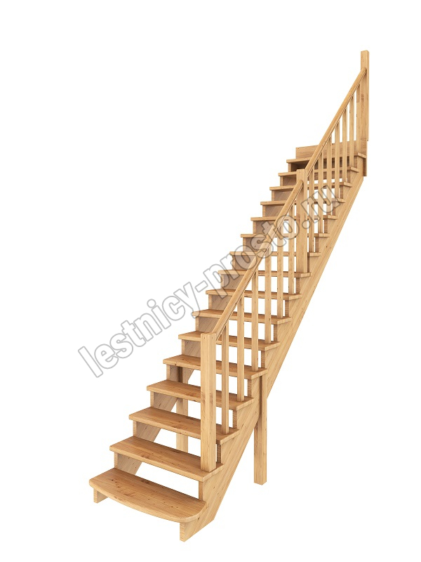 Базовый комплект включает в себя деревянные элементы лестницы и ограждения без какого-либо покрытия.