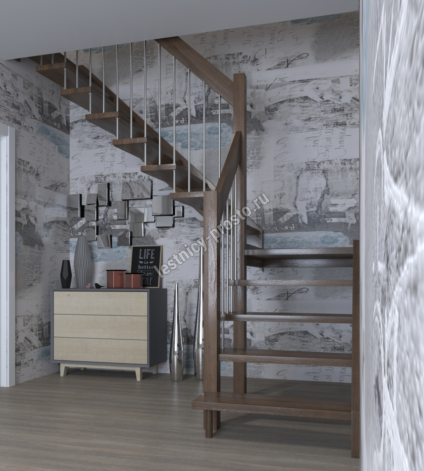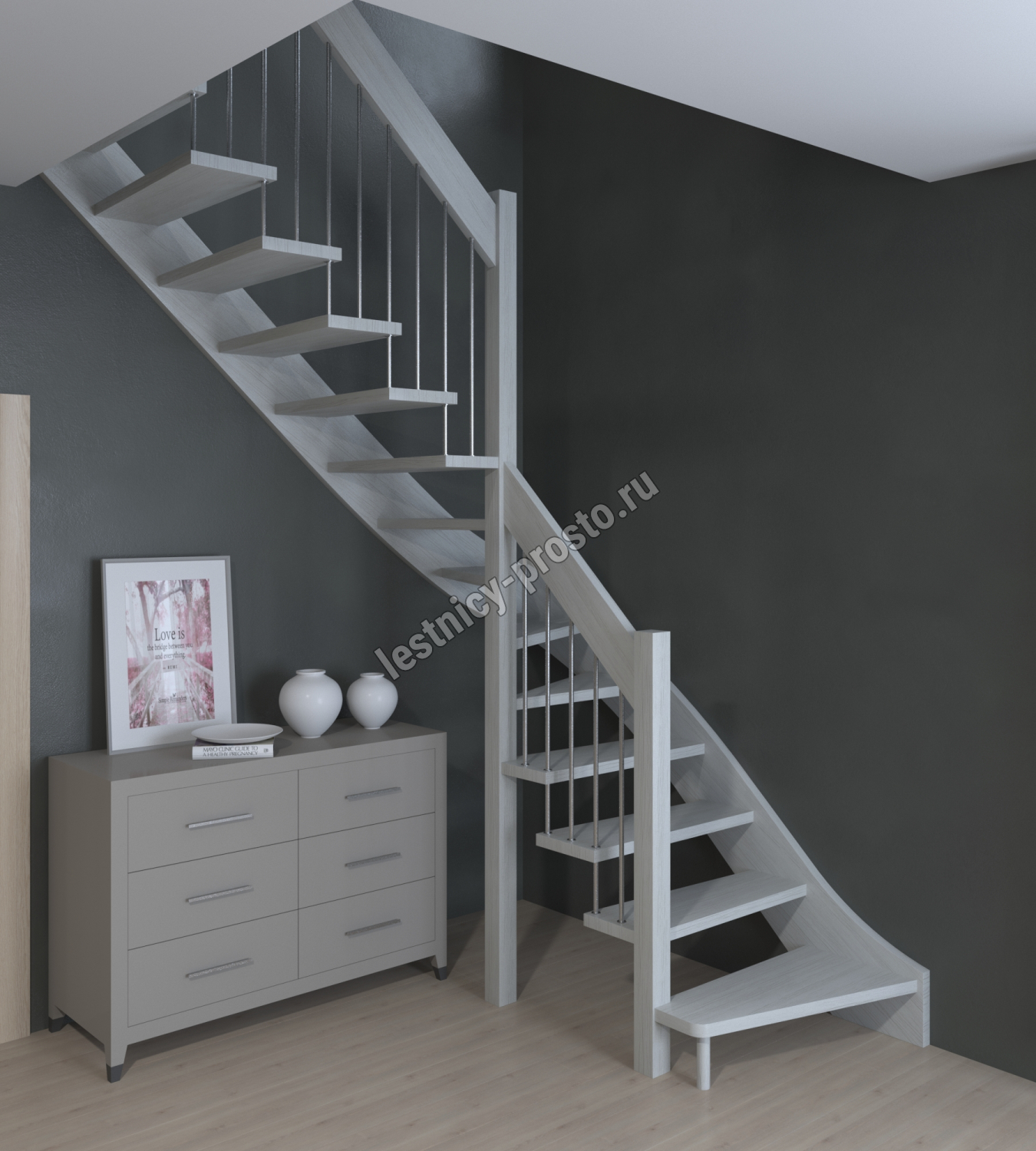 Лестница Prosto Console г-образная забежная бук, h292.5 см (12 ступеней)