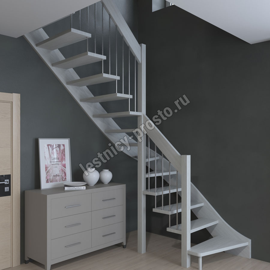 Лестница Prosto Console г-образная забежная сосна, h320 см