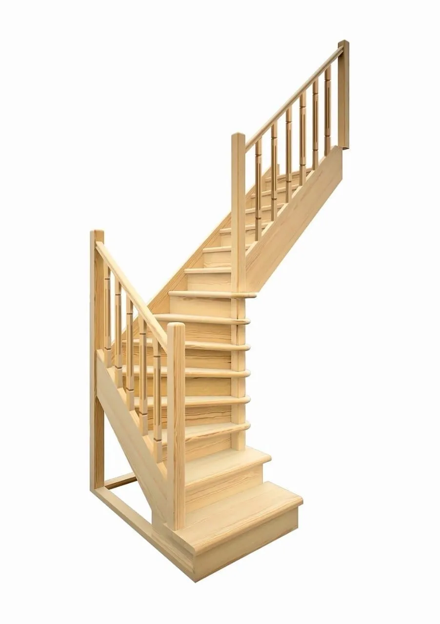 Лестница изготавливается под заказ. Возможны варианты подходящие под необходимые размеры проёма и высоту помещения. Базовое ограждение можно заменить на кованое или точеное. Лестницу можно дополнить подступенями, бортиками, миниподступенями. Первую ступень можно заменить на пригласительную - лекальную. Классическая модель поворотной лестницы раскрывает всю природную красоту натуральных материалов. У лестницы комфортная высота шага, удобный широкий марш и угол подъема. Указана стоимость лестницы без какого-либо покрытия.