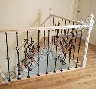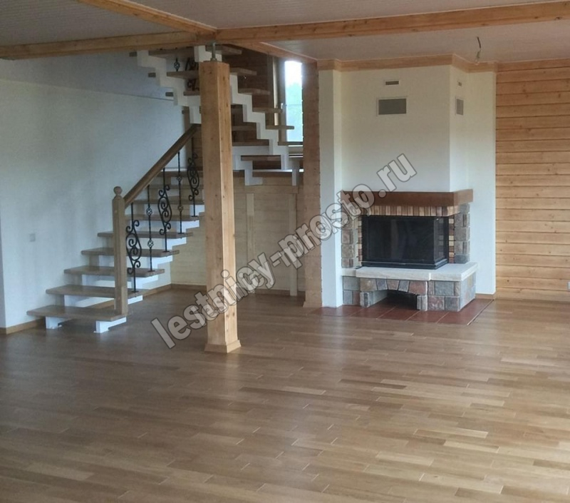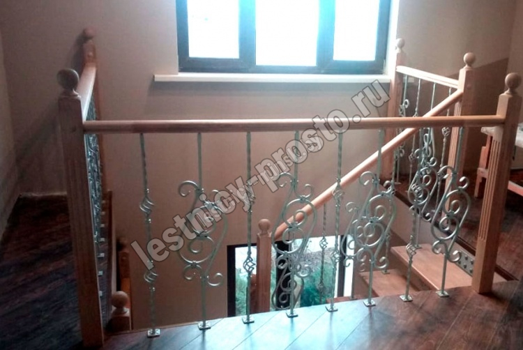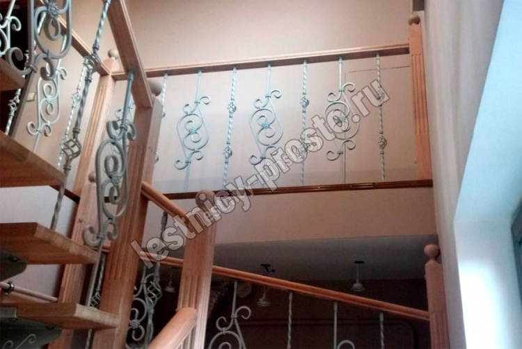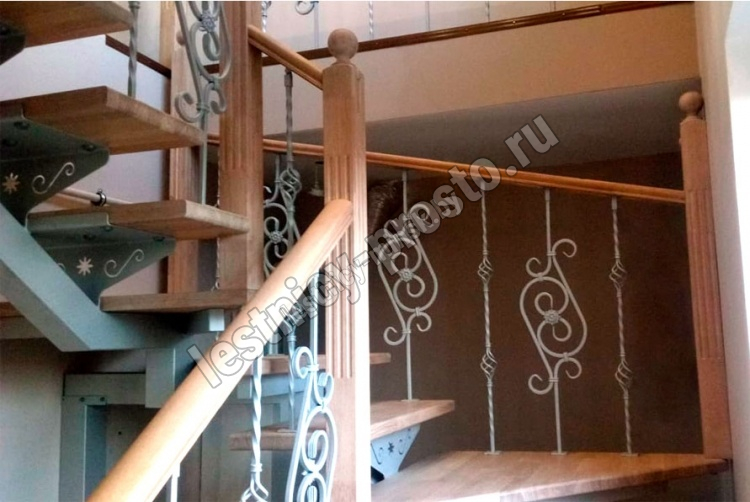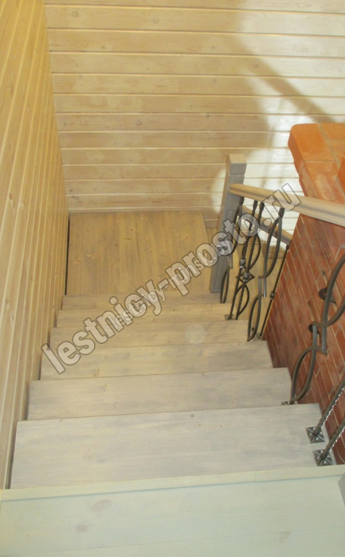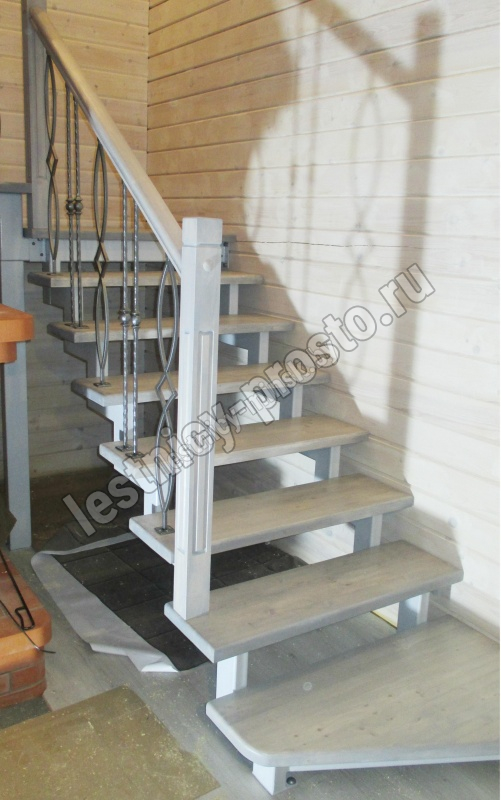 Деревянные элементы: столбы и поручень в базовой комплектации без окрашивания и какого-либо покрытия, металлические элементы окрашены в цвет каркаса лестницы.