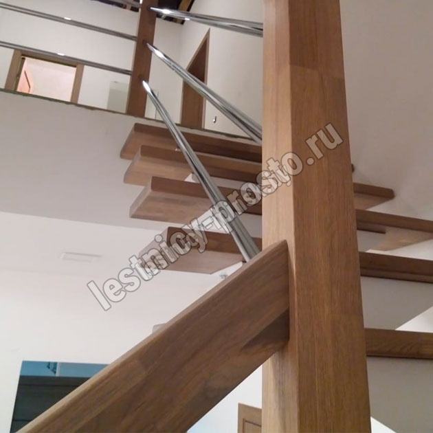 В комплекте: 3 прямых столба и профильный поручень без покрытия, набор из 3 ригелей из стали (окрашены в цвет каркаса или хром по желанию) диаметром 12 мм. Ограждение начинается со второй ступени.