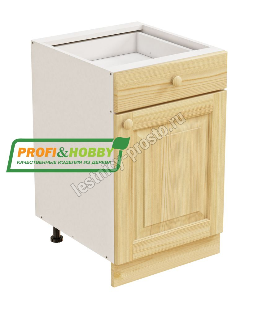 Тумба 1 дверь 1 ящик 500х530х720 + фасад сосна бесцветный акриловый лак
