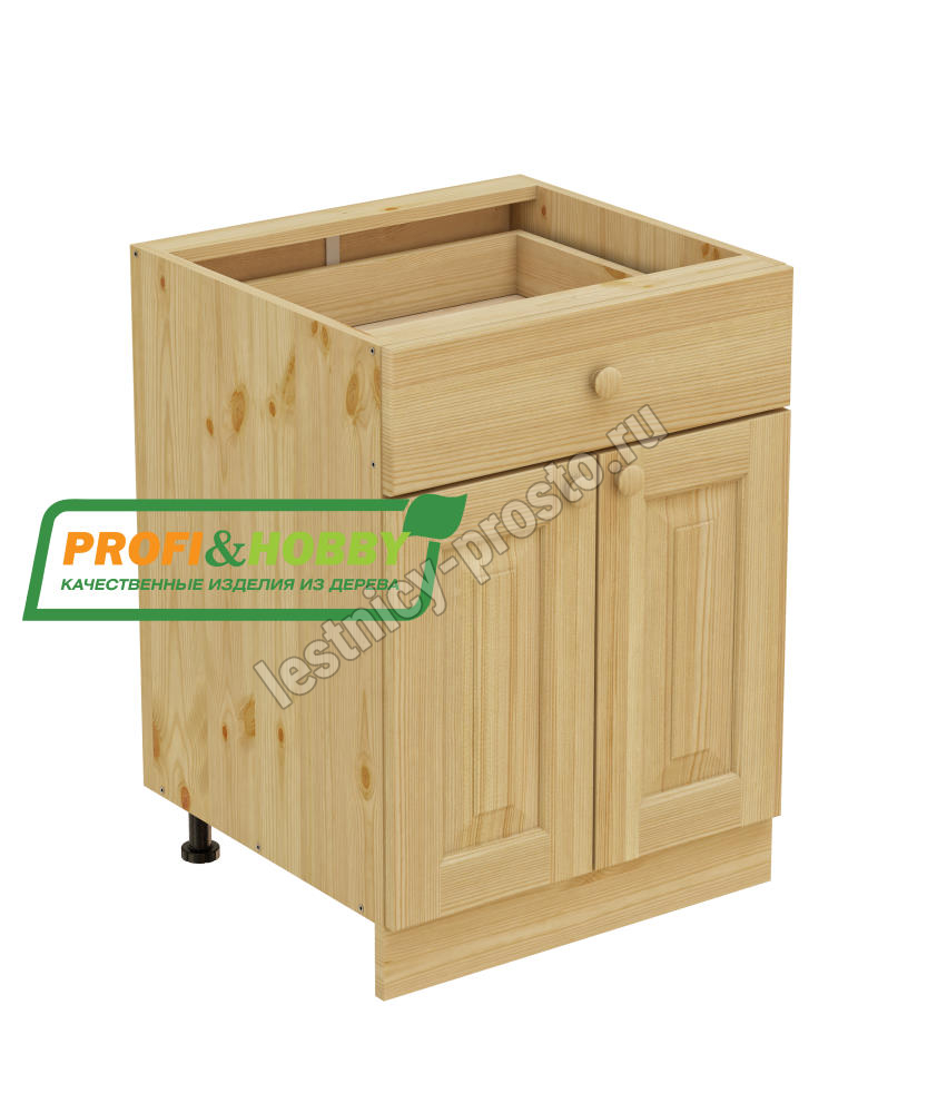 Тумба 2 двери, 1 ящик 600 х 560 х 720 сосна, бесцветный акриловый лак