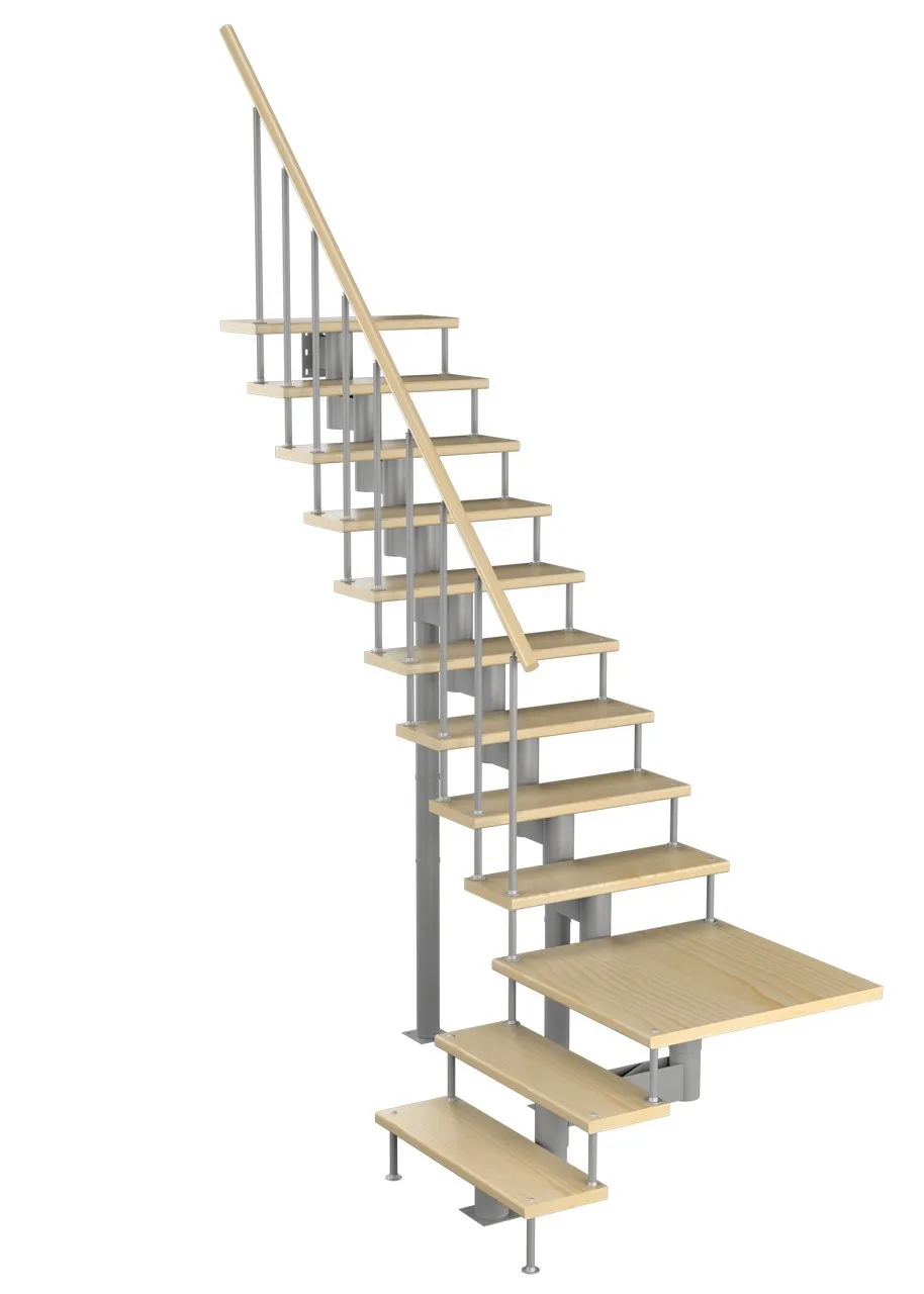 Основой лестницы Prosto Double 50×100 служит усиленный двойной металлический каркас из профильной трубы 50×100 мм (включая 4 опоры на пол под поворотом), который обеспечивает надёжную прочность конструкции и современный актуальный дизайн. Данный вариант лестницы предполагает поворот на 180° через забежные ступени. Под заказ возможно изготовление каркаса под поворотную площадку.