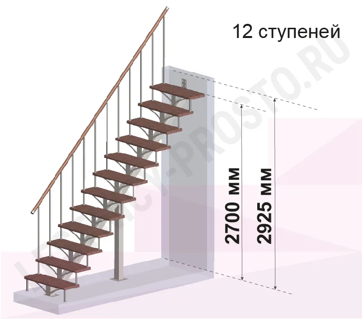 Лестница PROSTO MONO прямая, h292.5 см, ступени лиственница