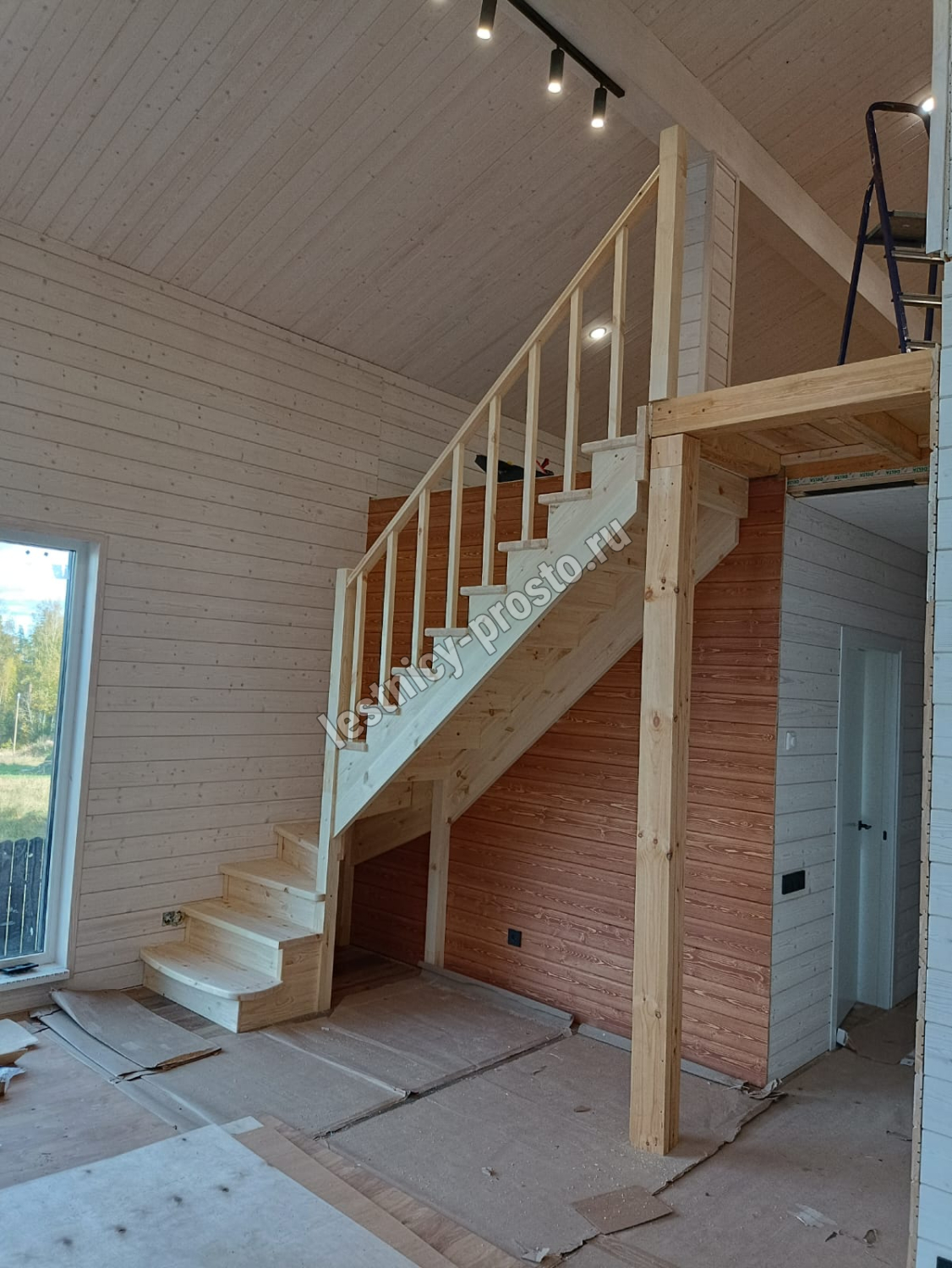 Базовый комплект включает в себя деревянные элементы лестницы и ограждения без какого-либо покрытия.