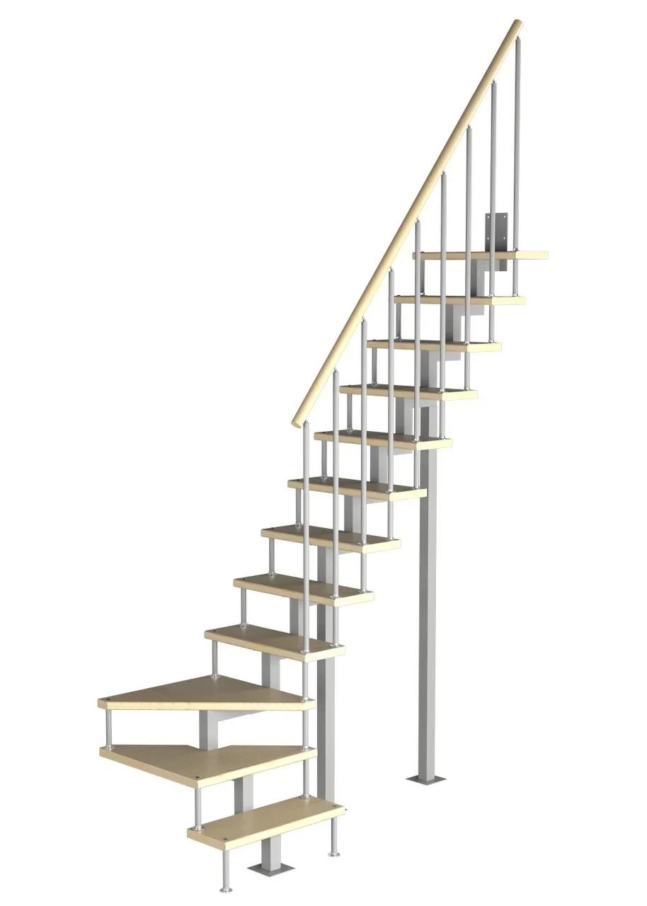соответствует картинке, но вы не ограничены в его выборе. Лестницу можно приобрести и без ограждения, и с любым другим. Устанавливать на такую лестницу можно почти всё, начиная от классических деревянных балясин и заканчивая эксклюзивными коваными изделиями.