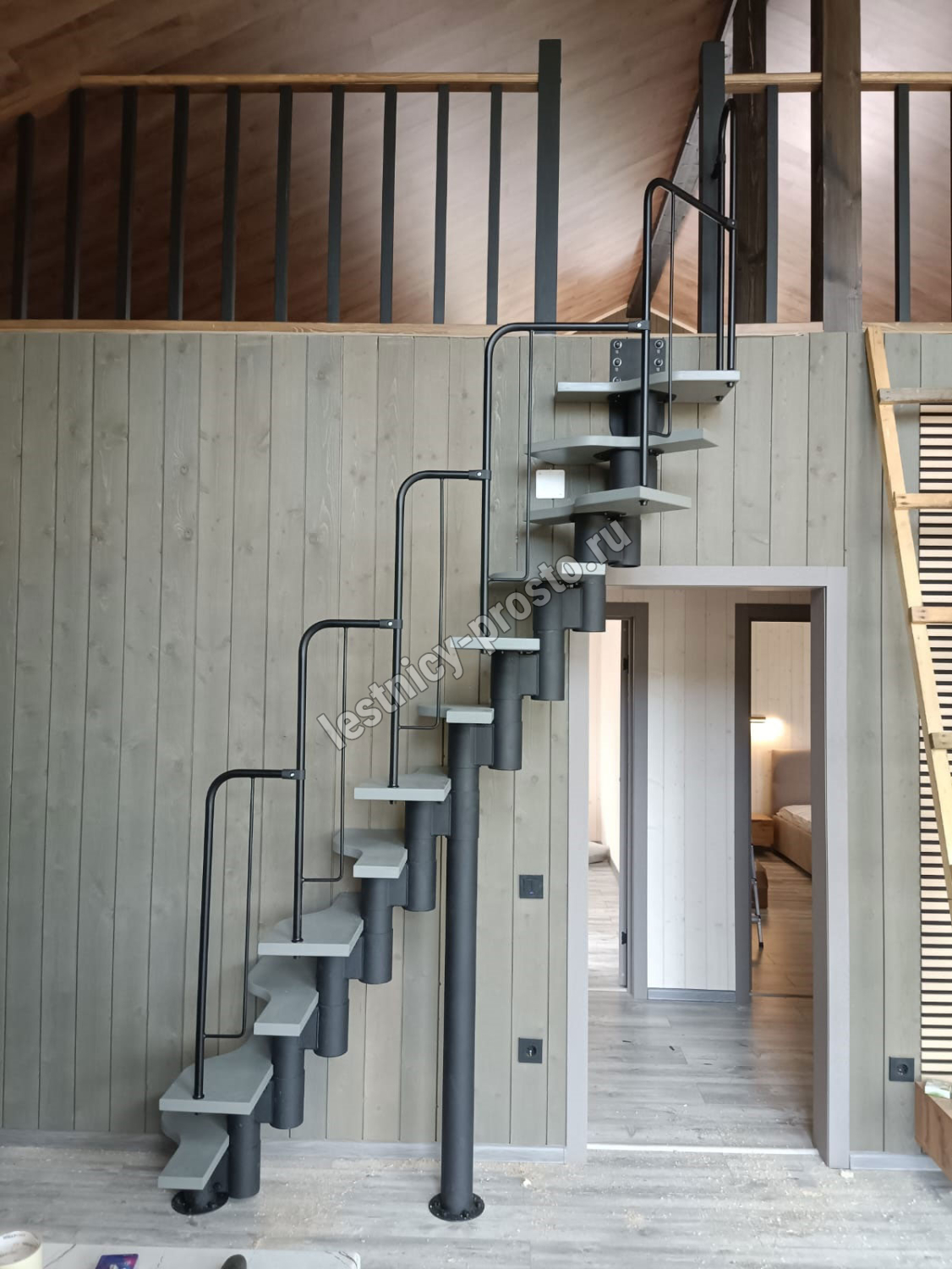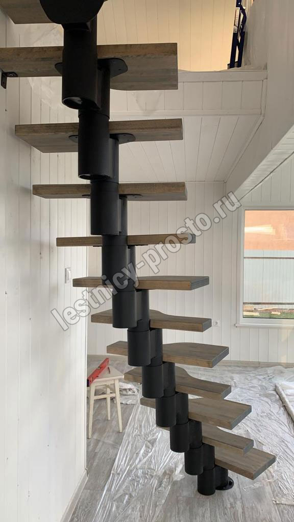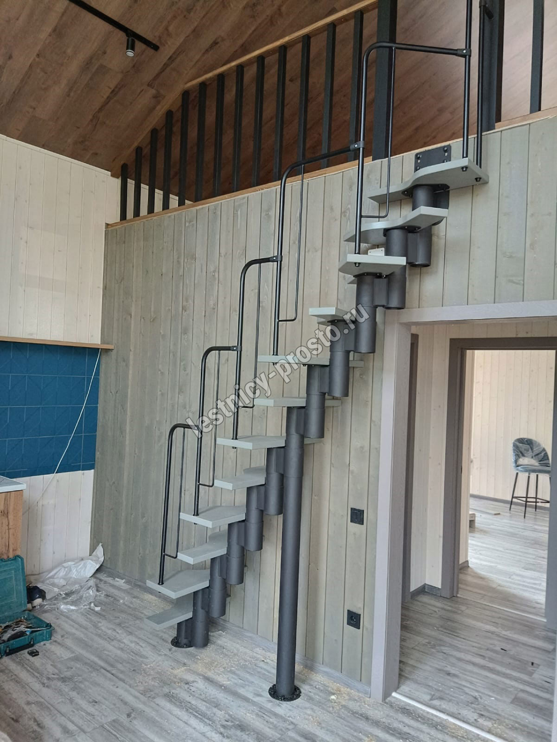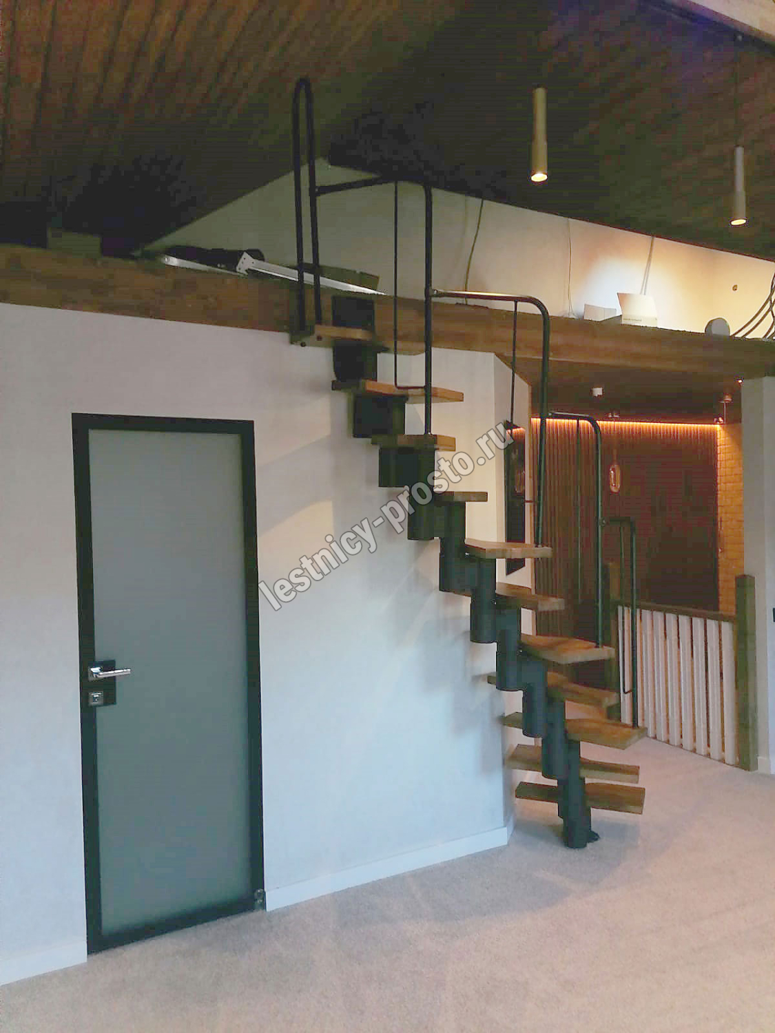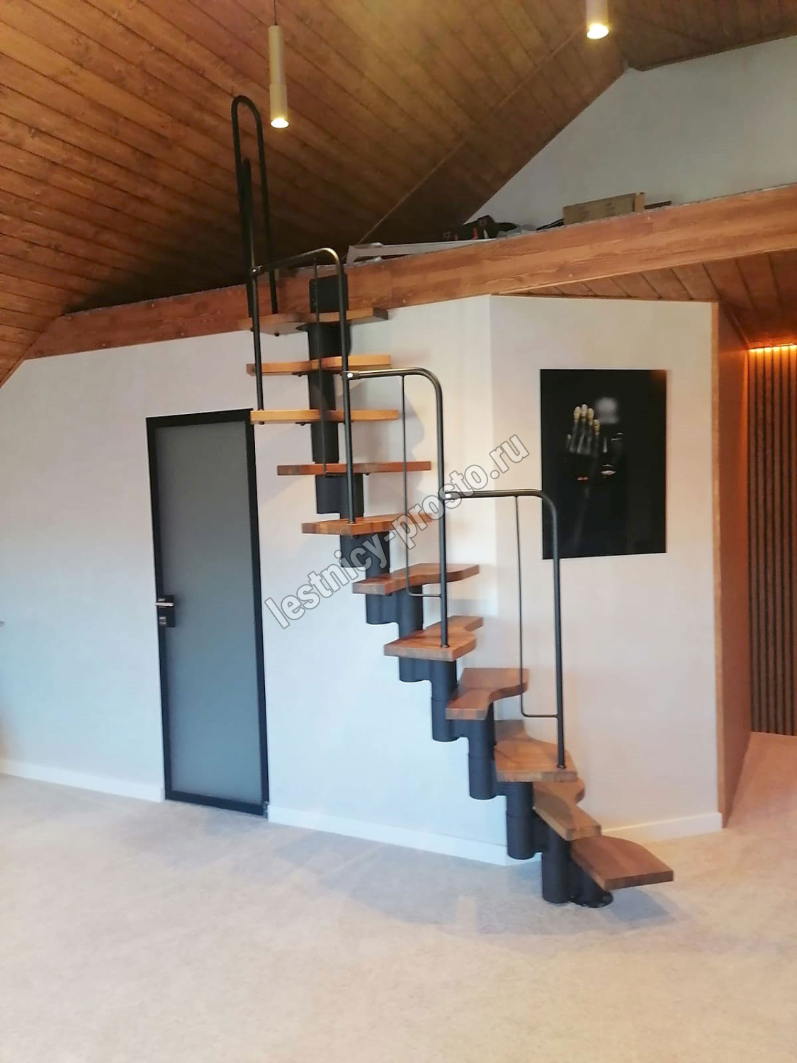 Лестница Prosto Urban Black гусиный шаг 600 мм, h234-336 см (13 ступеней), ясень