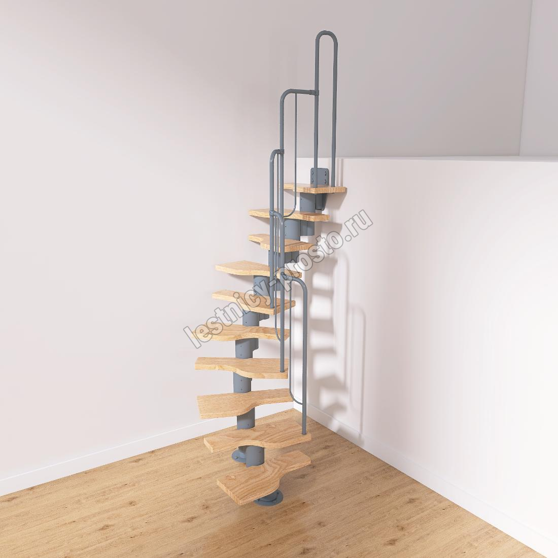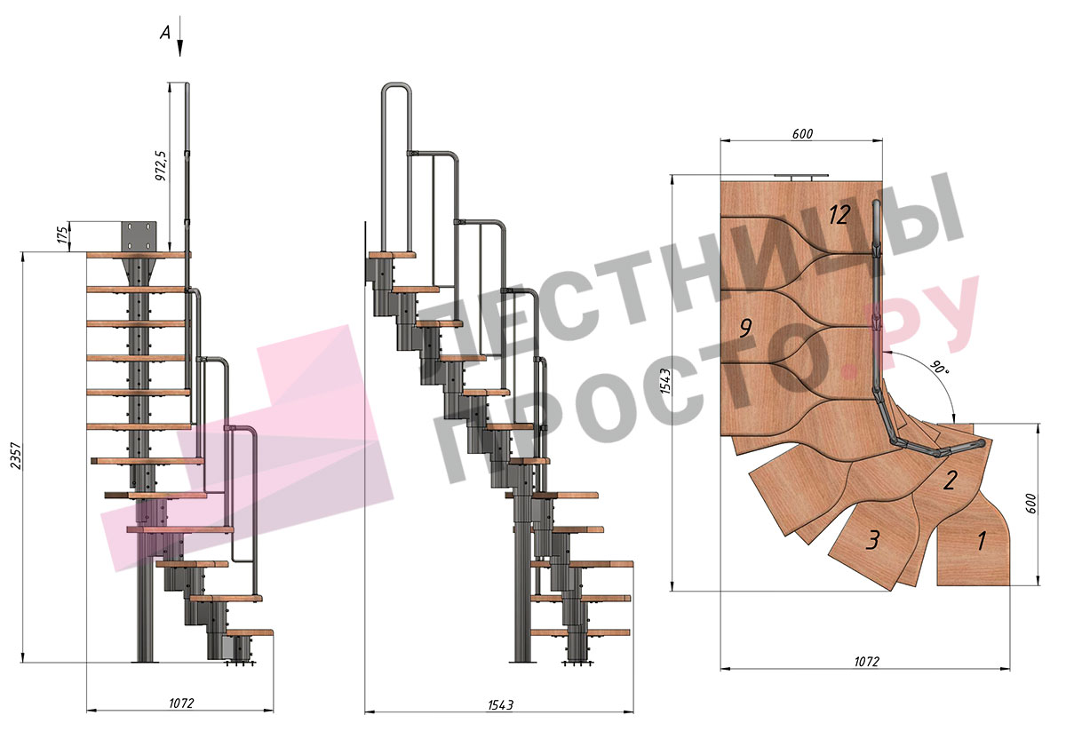 Лестница Prosto Urban Grey г-образная гусиный шаг 600 мм/ Ступени из берёзы мультиплекс