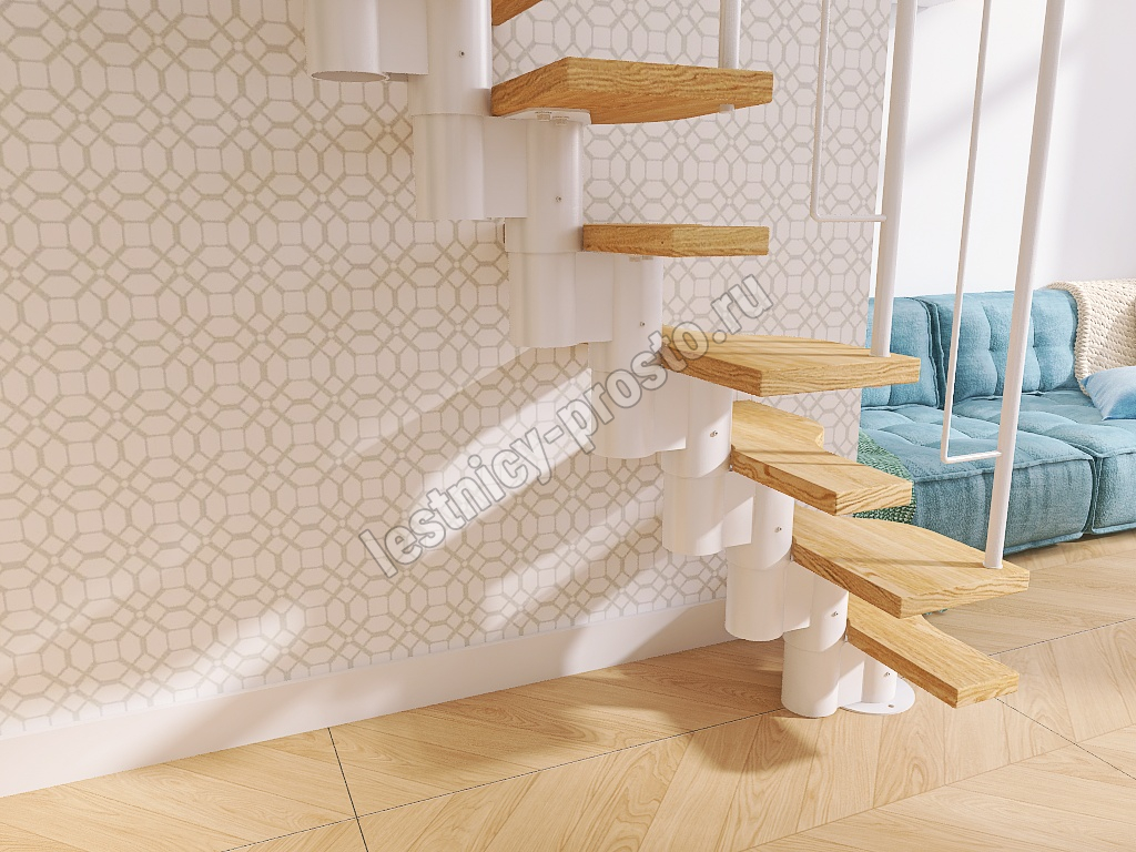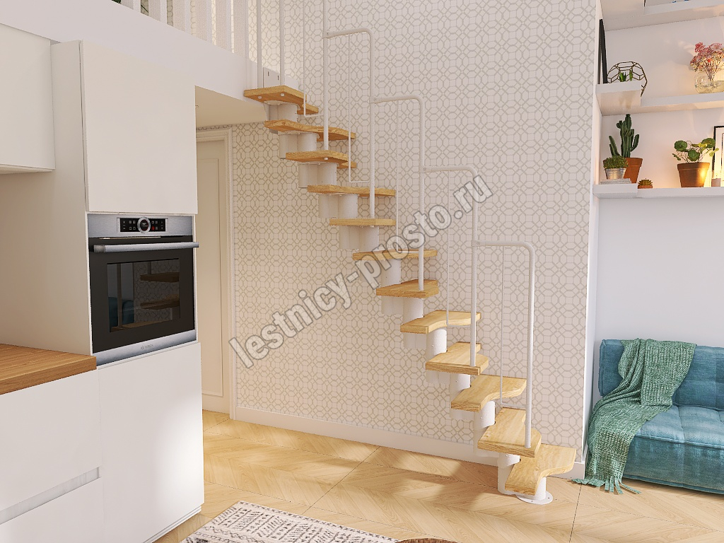 Лестница Prosto Urban White гусиный шаг 700 мм, h234-336 см (13 ступеней), дуб