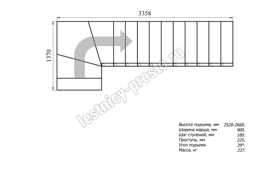 Модульная лестница Фаворит 180 2520-2660, Серый, Сосна, Крашеная, Без Ступений