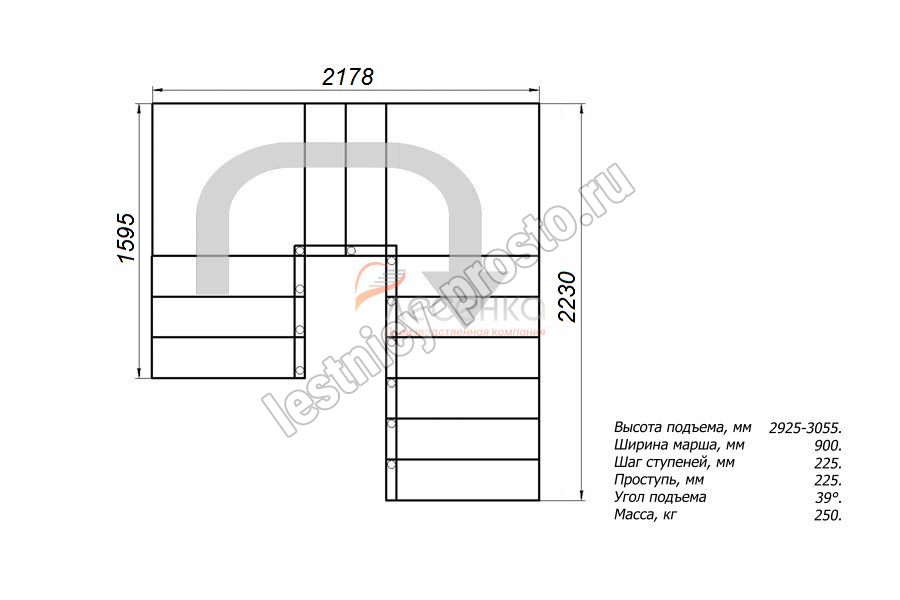 Модульная лестница Комфорт 225 2925-3055, Белый, Лиственница, Нержавеющая сталь