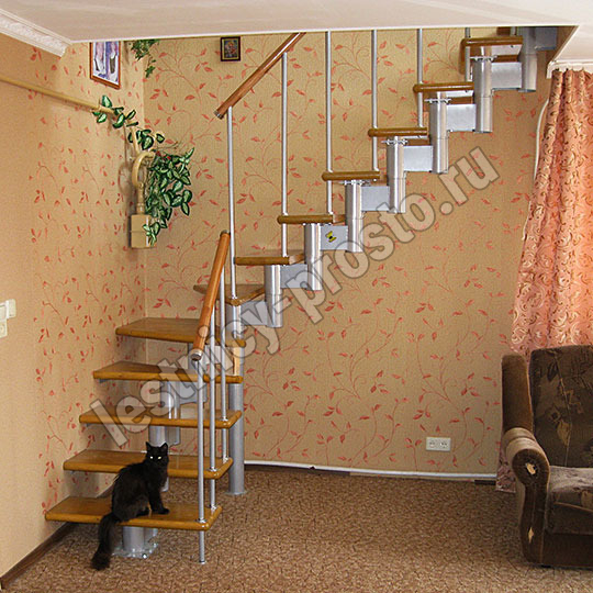 Модульная лестница PROSTO MODULE Г-образная, h202.5, лиственница