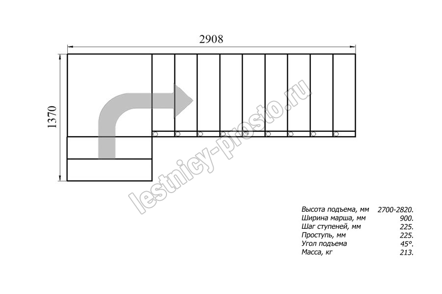 Модульная лестница Статус 225 2700-2820, Белый, Лиственница, Нержавеющая сталь