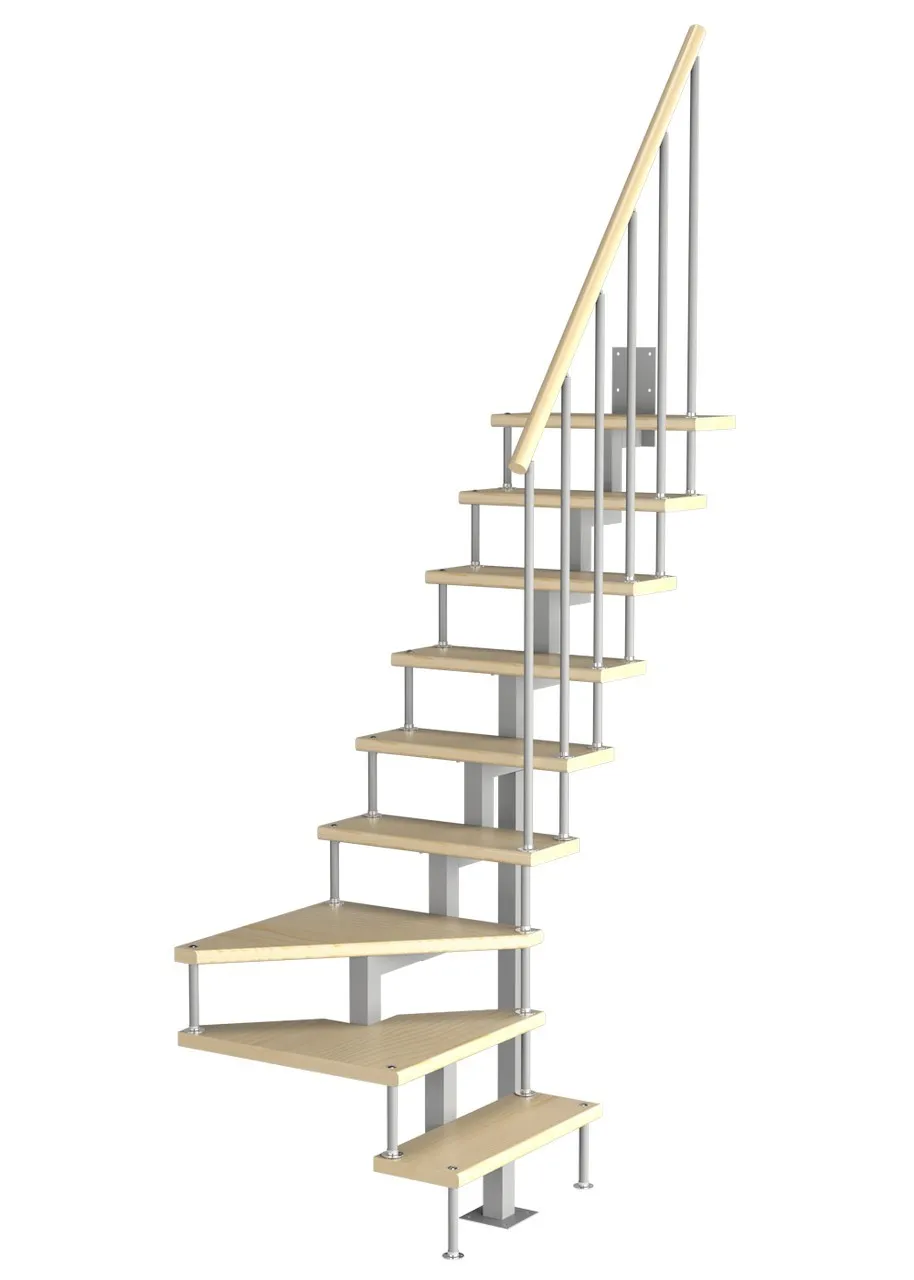 Модульная малогабаритная лестница Эксклюзив 3150-3375, Серый, Лиственница, Нержавеющая сталь