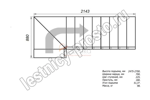 Высота лестницы 2475 - 2700 мм