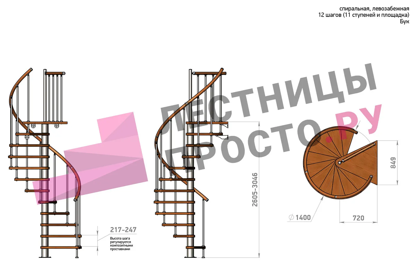 | Винтовая лестница Prosto Spiral Black D140см, h260.5-304.6 см, бук |