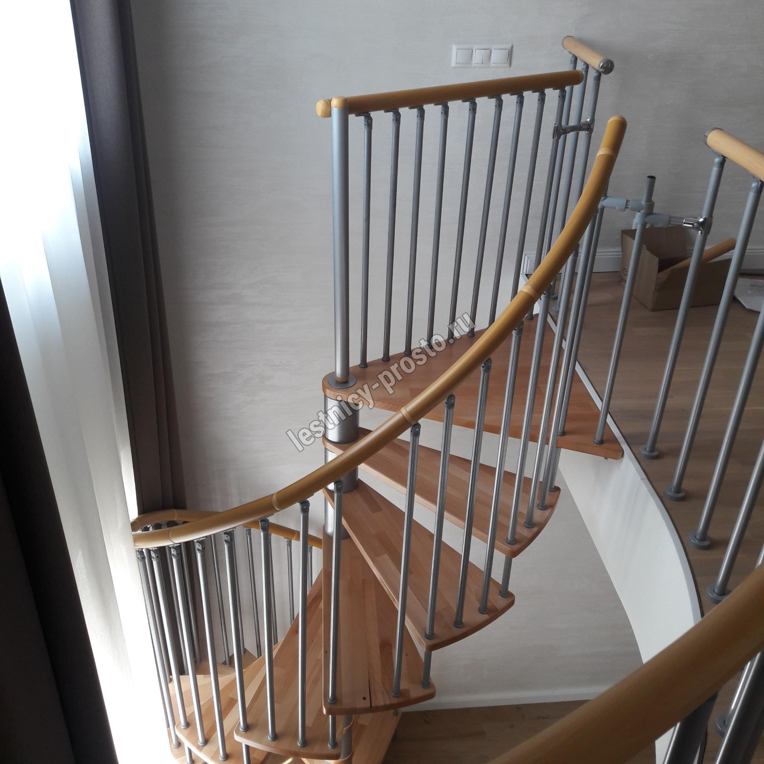 Винтовая лестница SPIRAL DECOR d140 см, серебро, бук лакированный