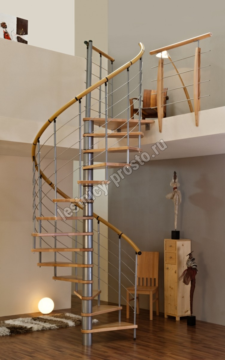 Винтовая лестница Venezia d140 см, серебро, бук лакированный