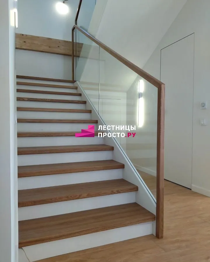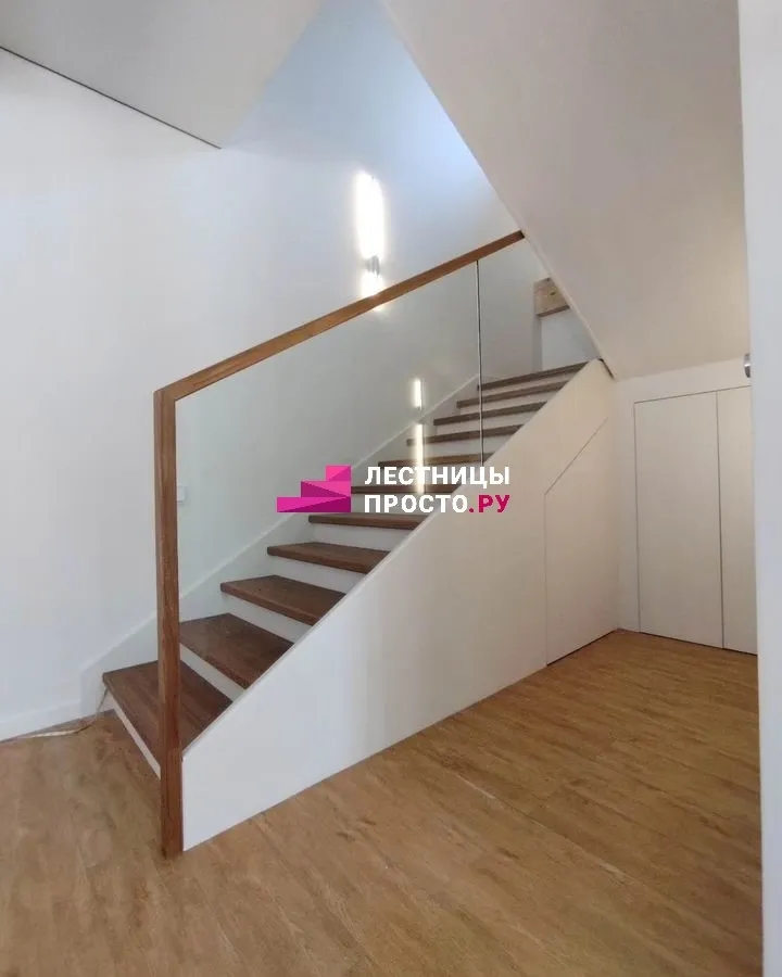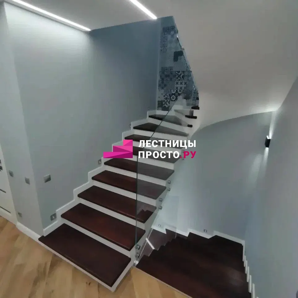 Отделка двухмаршевой бетонной лестницы деревом LP-1-44